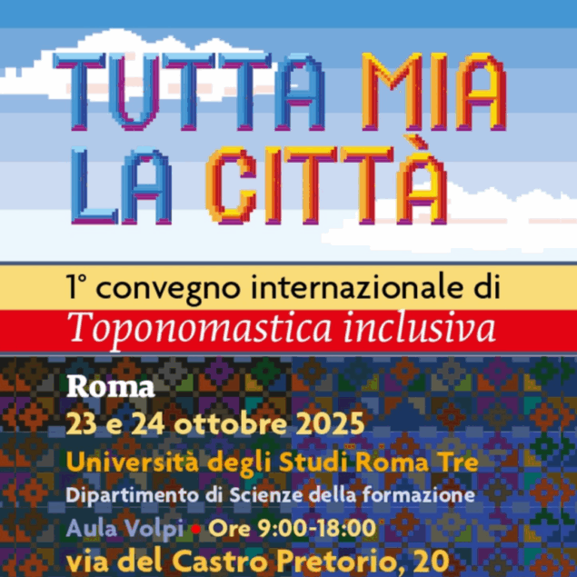 Giovedì 23 e venerdì 24 ottobre 2025, si terrà il XIV Convegno di Toponomastica femminile e 1° convegno internazionale di Toponomastica inclusiva dal titolo Tutta mia la città organizzato dall‘Associazione Toponomastica Femminile.